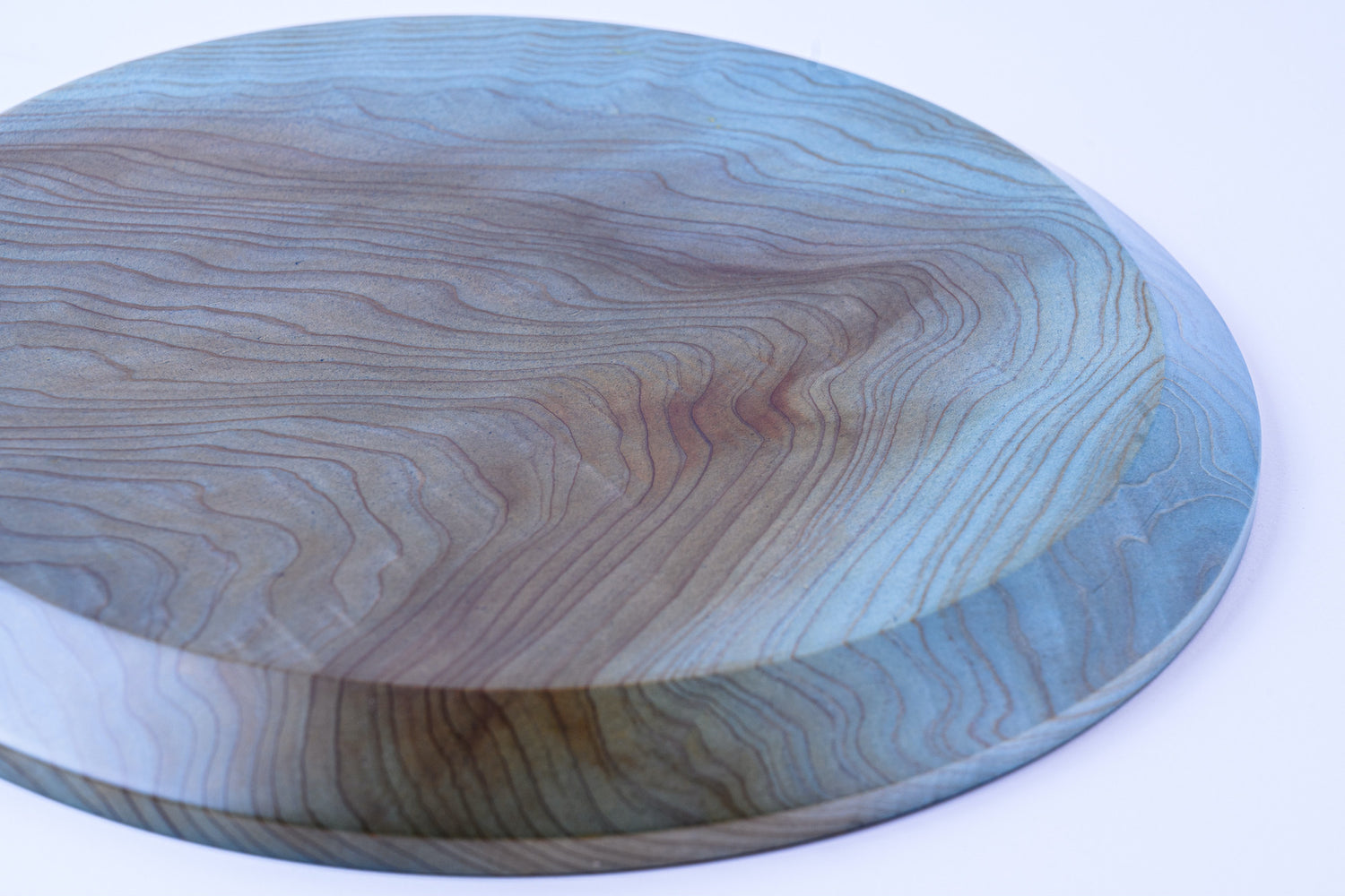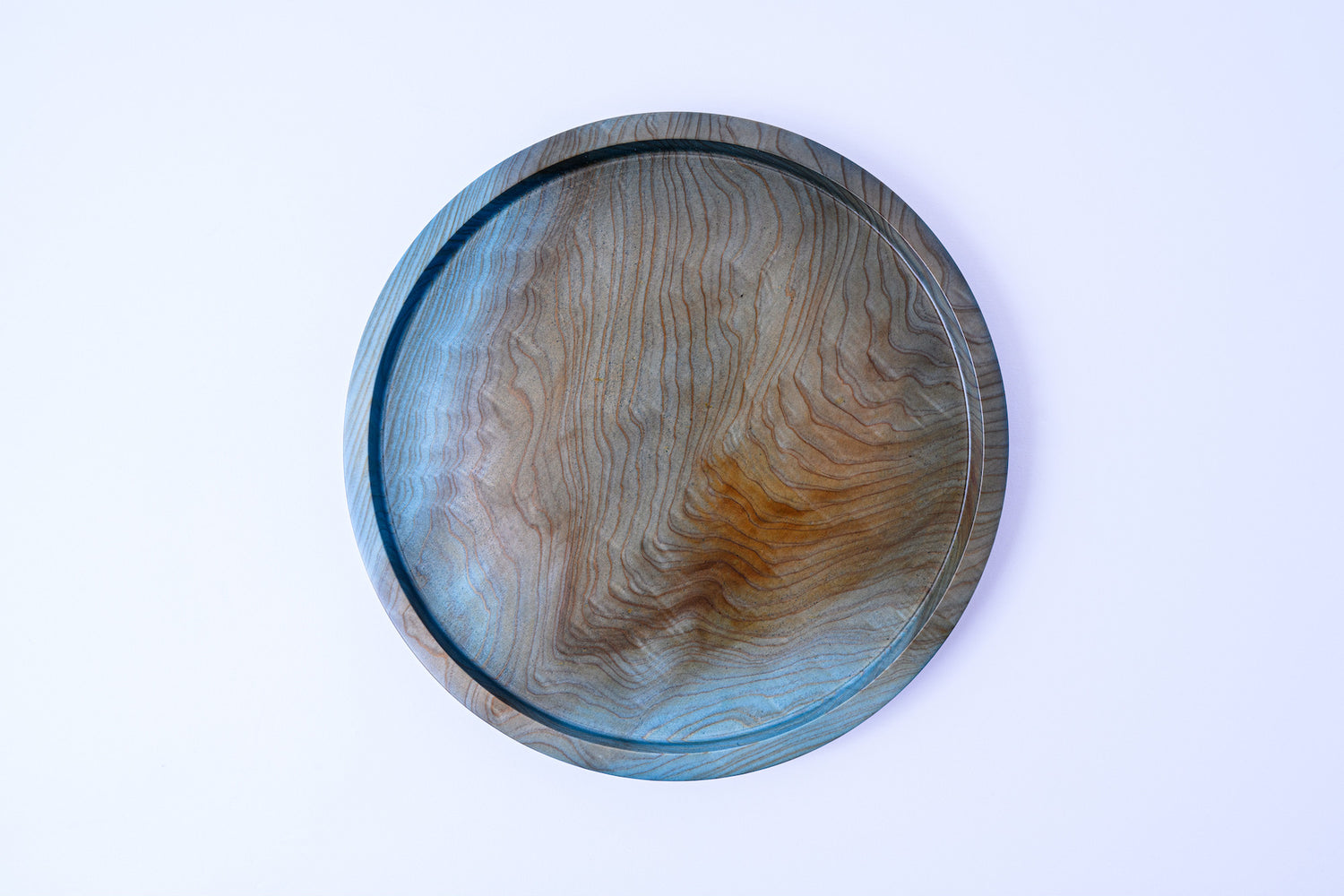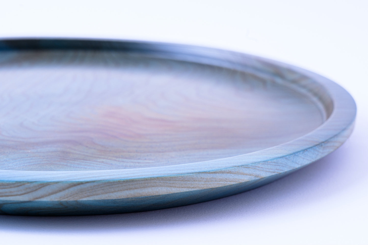 This plate is made of natural cedar and is entirely dyed with indigo.