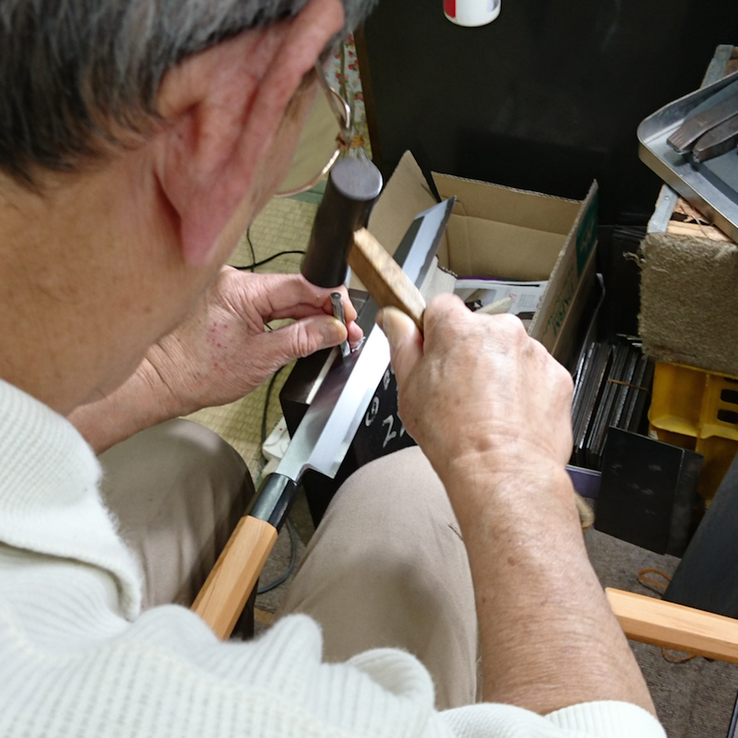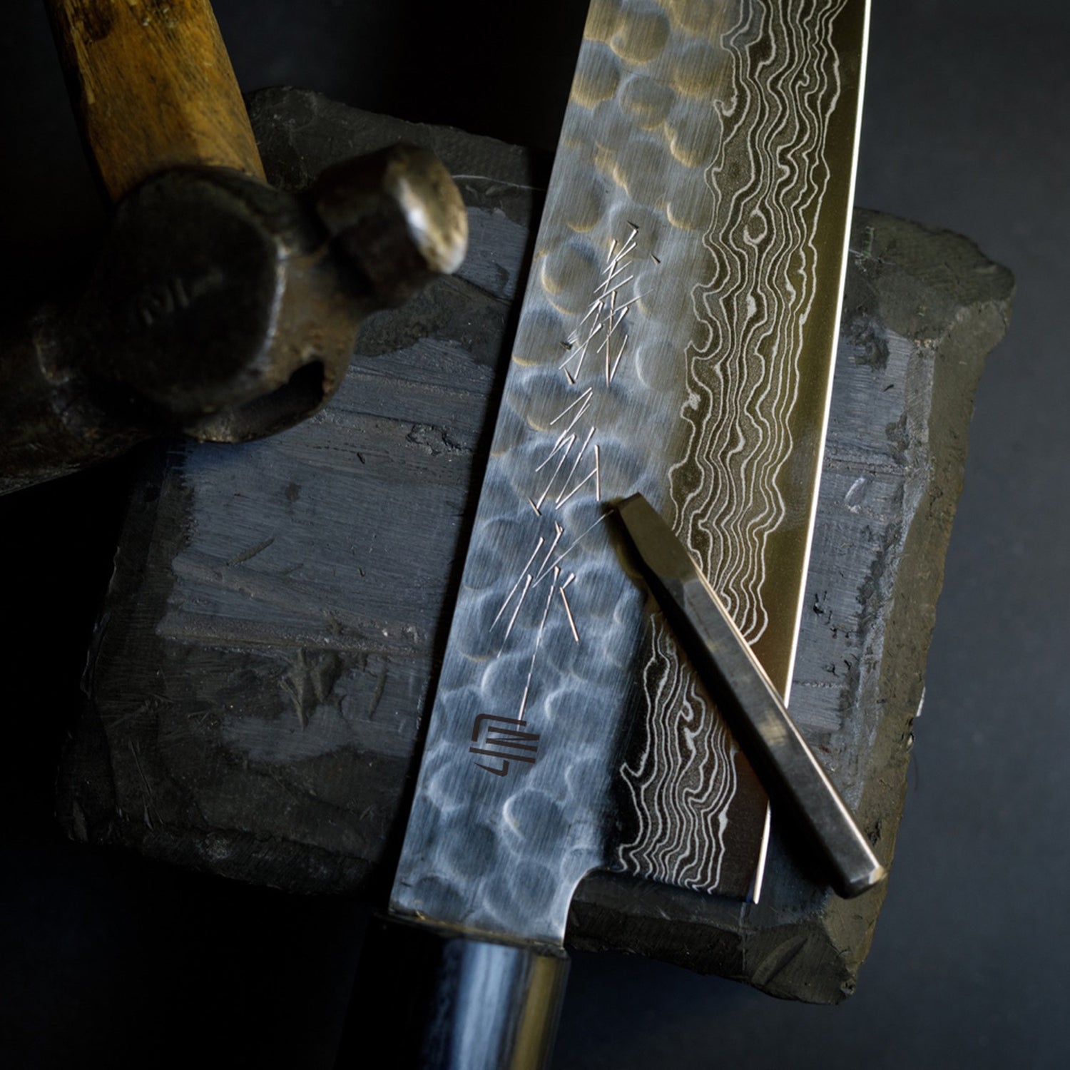 包丁職人がノミを使ってひとつずつ文字を刻み込みます。