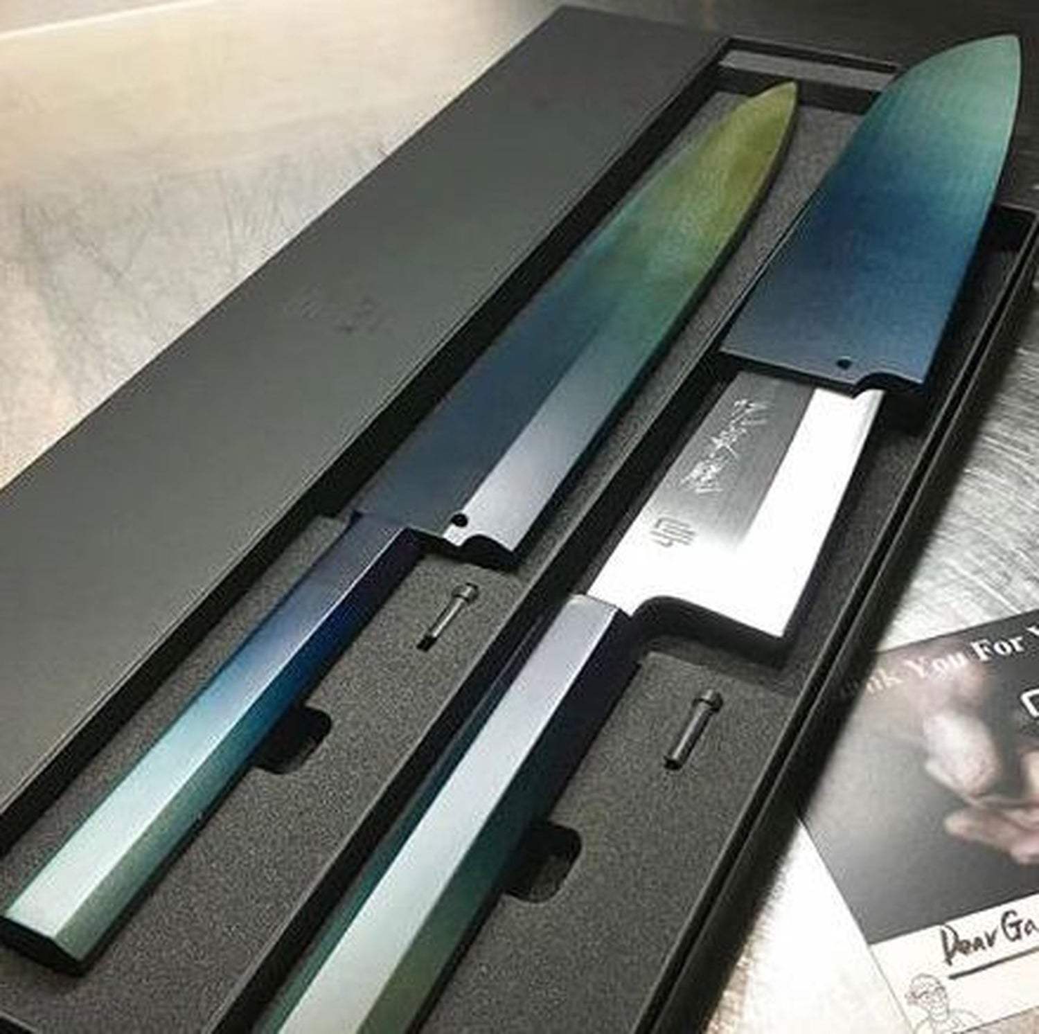 包丁の刃に文字(お名前やメッセージ)を入れることができます。