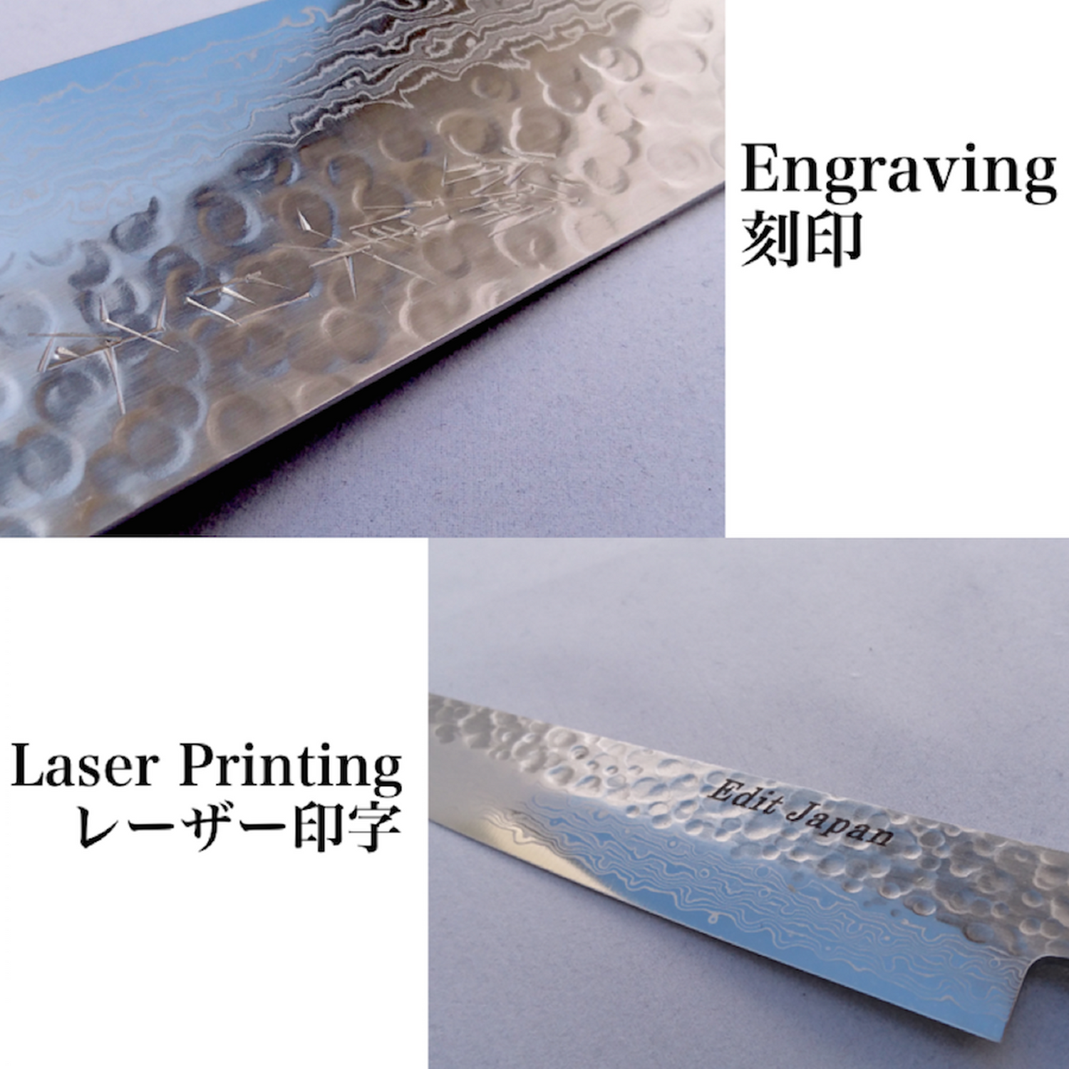 ① ご注文いただく際にタガネ彫りかレーザー印字を選んでください。